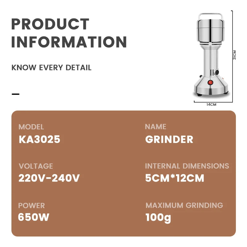 ✨ Grind rice, coffee beans, spices, and grains into fine powder in seconds.