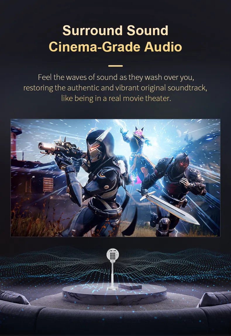 🎥 200-Inch Projection Size Transform any room (or backyard!) into a full-size theater with adjustable screen sizes from 30" to a massive 200".